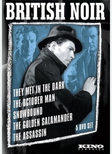 While the film noir movement may seem like a distinctly American phenomenon, British studios embarked on their own shadowy thrillers, laced with postwar cynicism. This five-DVD collection assembles some of the lesser-known Brit noir titles from the Rank Studios, featuring such major talents as actors James Mason, Trevor Howard, and John Mills; and directors Ronald Neame and Roy Ward Baker. <p> THEY MET IN THE DARK (1943): Discharged for treason, a former Navy Commander (James Mason) sets out to expose the espionage ring that destroyed his career - Directed by Carl Lamac. <p> THE OCTOBER MAN (1947): After a traumatic brain injury, a young engineer (John Mills) tries to repair his life. But his recovery is thwarted when a woman (Kay Walsh) is found strangled-and he becomes the prime suspect - Directed by Roy Ward Baker. <p> SNOWBOUND (1948): A British Army vet (Dennis Price) exposes a plot by ex-Nazis to reclaim a stash of gold bullion hidden at a ski resort. This edition was derived from a master suffering from moderate deterioration and is presented in a less-than-ideal condition - the stellar cast included Robert Newton, Herbert Lom and Stanley Holloway - Directed by David MacDonald. <p> THE GOLDEN SALAMANDER (1950): A British archaeologist (Trevor Howard) finds himself caught between a gang of North African gun-runners and the woman he loves (Anouk Aimee) - the top-notch cast included Herbert Lom and Wilfrid-Hyde White - Directed by Ronald Neame. <p> THE ASSASSIN (aka Venetian Bird) (1952): A private eye (Richard Todd) arrives in Venice in search of a fugitive, but soon discovers that the city's winding waterways hold dark secrets - Directed by Ralph Thomas.